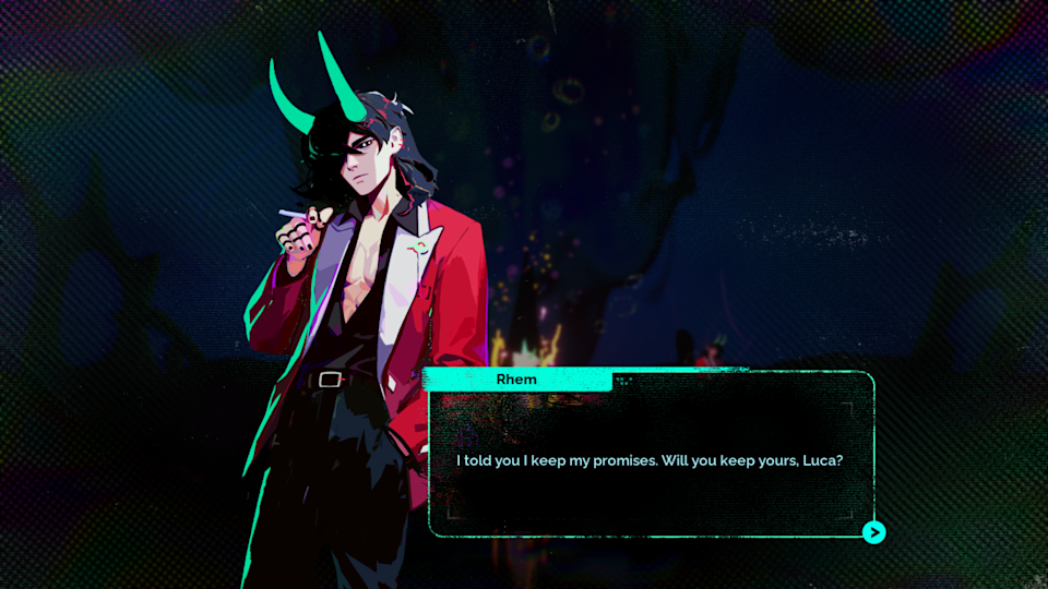 Heart Machine knows how to make a stylish game, so it’s no surprise that the studio’s latest project, Possessor(s), is sexy as hell. I mean, just look at Rhem, the cosmic demon with a chiseled jawline, aquamarine horns and a fine-cut suit unbuttoned down to his navel, who alternately encourages and negs you throughout the game. Stupid sexy Rhem.
