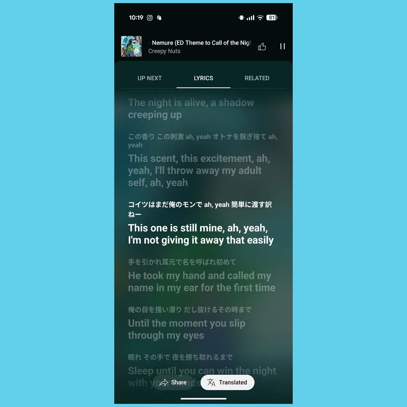 Shown to be in very early testing for a small number of users, under the lyrics tab when listening to a song, a new button for Google Translate is located towards the bottom of the UI. Users aren’t provided options for the translated language, as the app appears to use the system’s default language. Again, it’s in early testing and that feature could come down the road.