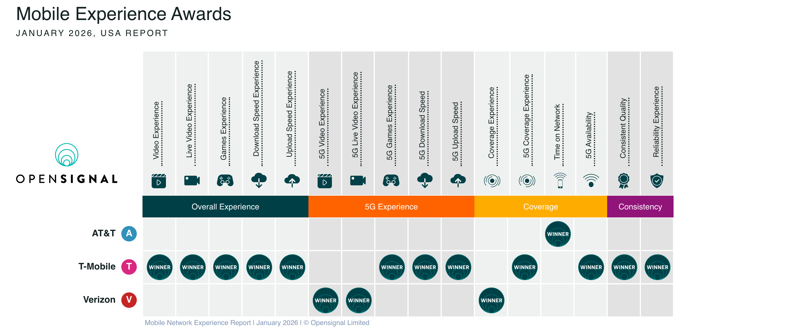 We look forward to seeing these awards highlighted in any potential TV commercials these three companies have planned in the future. AT&T’s award for overall Time on Network basically writes itself.